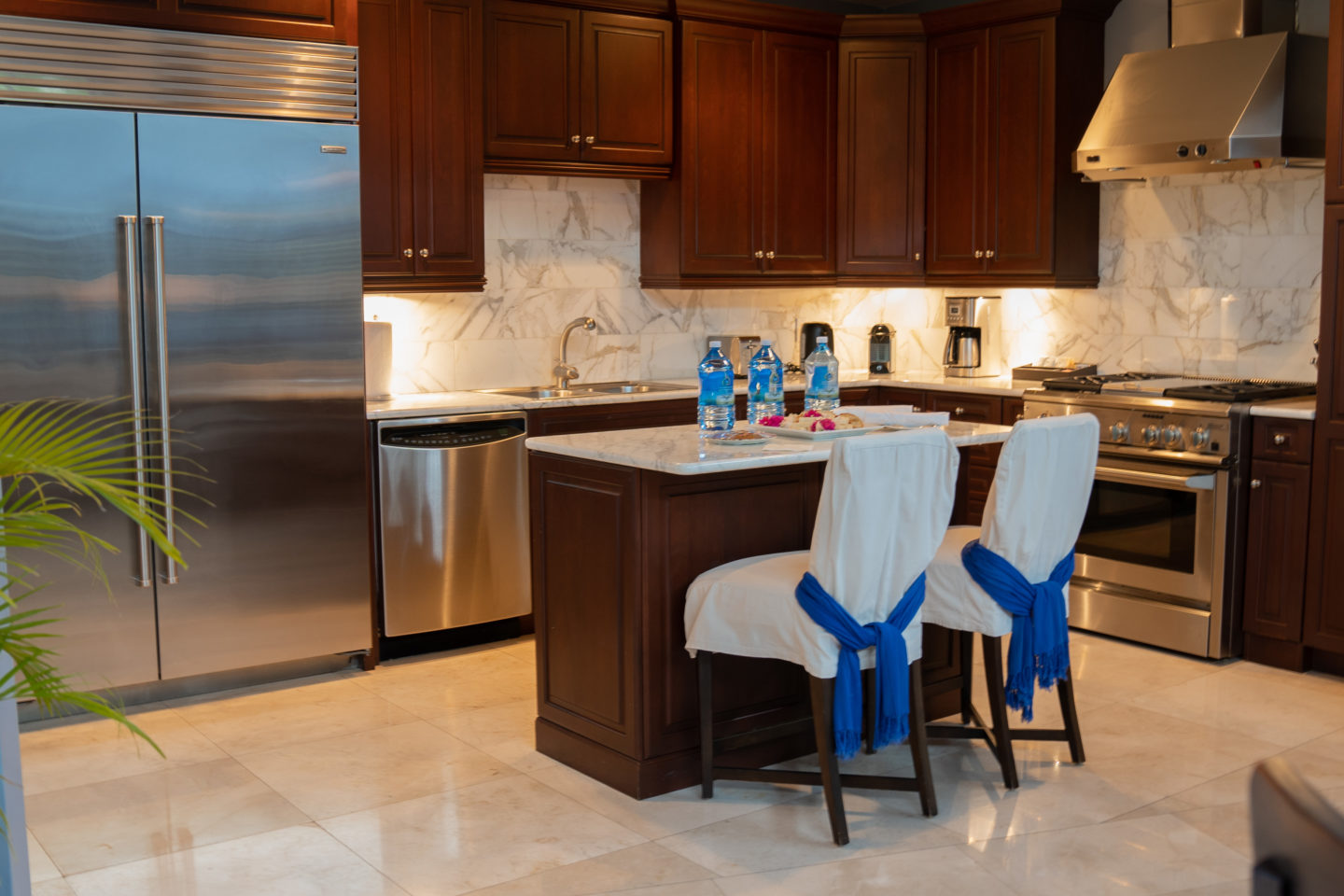 The Villa! We stayed 3 lovely nights in the Three-Bedroom Sunset Hill Villa. It was great for families thanks to the space and the privacy. It feels like you have a home on the island all to yourself. Best of all, you can order food and other necessities ahead of time. For example, I ordered milk for the kids, tea for me, and water to drink. If you want to cook (unlike me), you can order prime meats and fish such as salmon and ribeye. The outdoor backyard came with a private pool and that was a dream for me as a covered Muslim woman! Oh and one major perk of the villa – golf cart! Because the villas are on the golf course towards the entrance of the Resort, the golf carts made it easy to get to the guesthouse for meals and amenities.