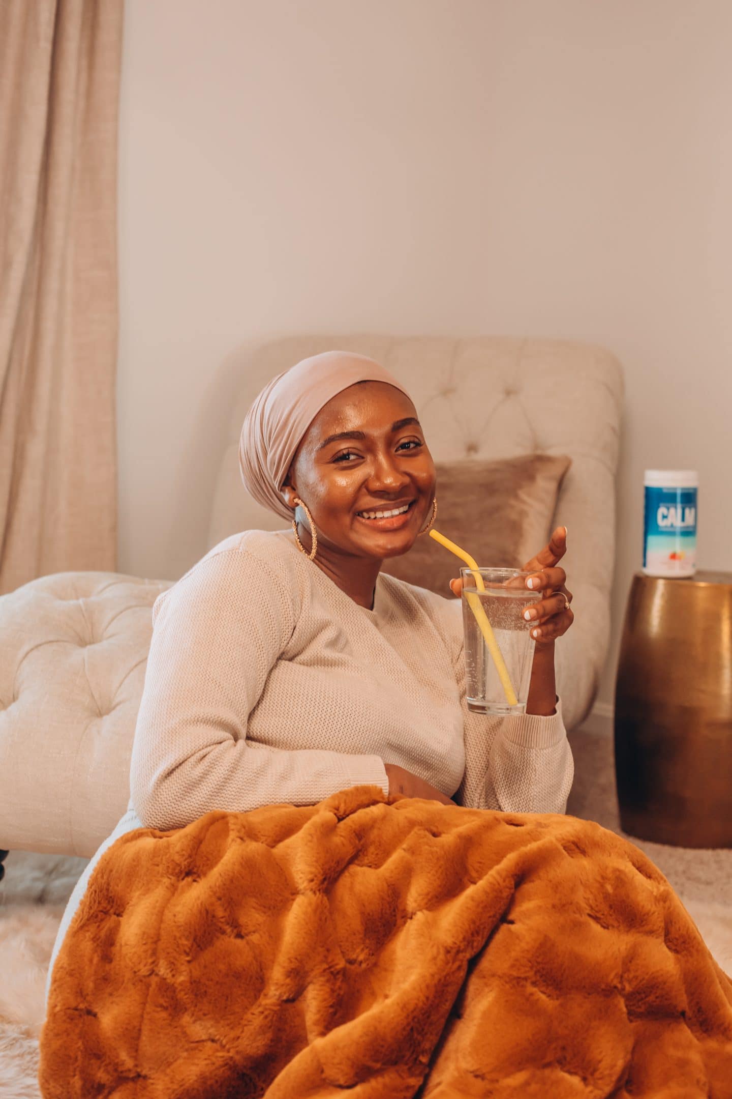 By this, I mean, prepare items that you want easily accessible and that bring you comfort so you can sleep better. On my bedside, you’ll find: 1. A good book for sleep reading; 2. My charger because it helps me sleep better knowing my phone will be charged when I get up to start my day; 3. A cup of tea and a bottle of water with my Natural Vitality CALM mix; 4. The tv remote because sometimes I like to watch tv to unwind after a long day.