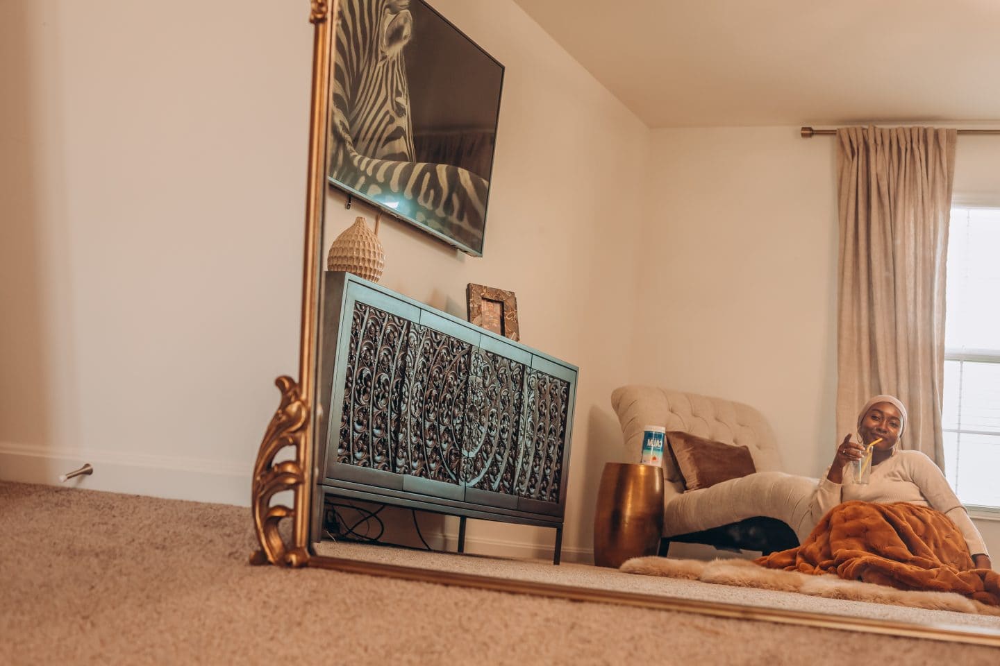 Somewhere in your room, I encourage you to have a candle. For safety reasons, it doesn’t have to be near your bed unless someone is home with you. I usually light mine on the dresser or near my reading corner so I always remember to turn it off on my way to bed. Anyway, candles have been so magical for me in calming down, especially before bed. I buy a lot of candles from different home stores as well as online at an affordable price. I love filling my whole house with them. Whatever scents make you happy, I recommend adding them to your space.
