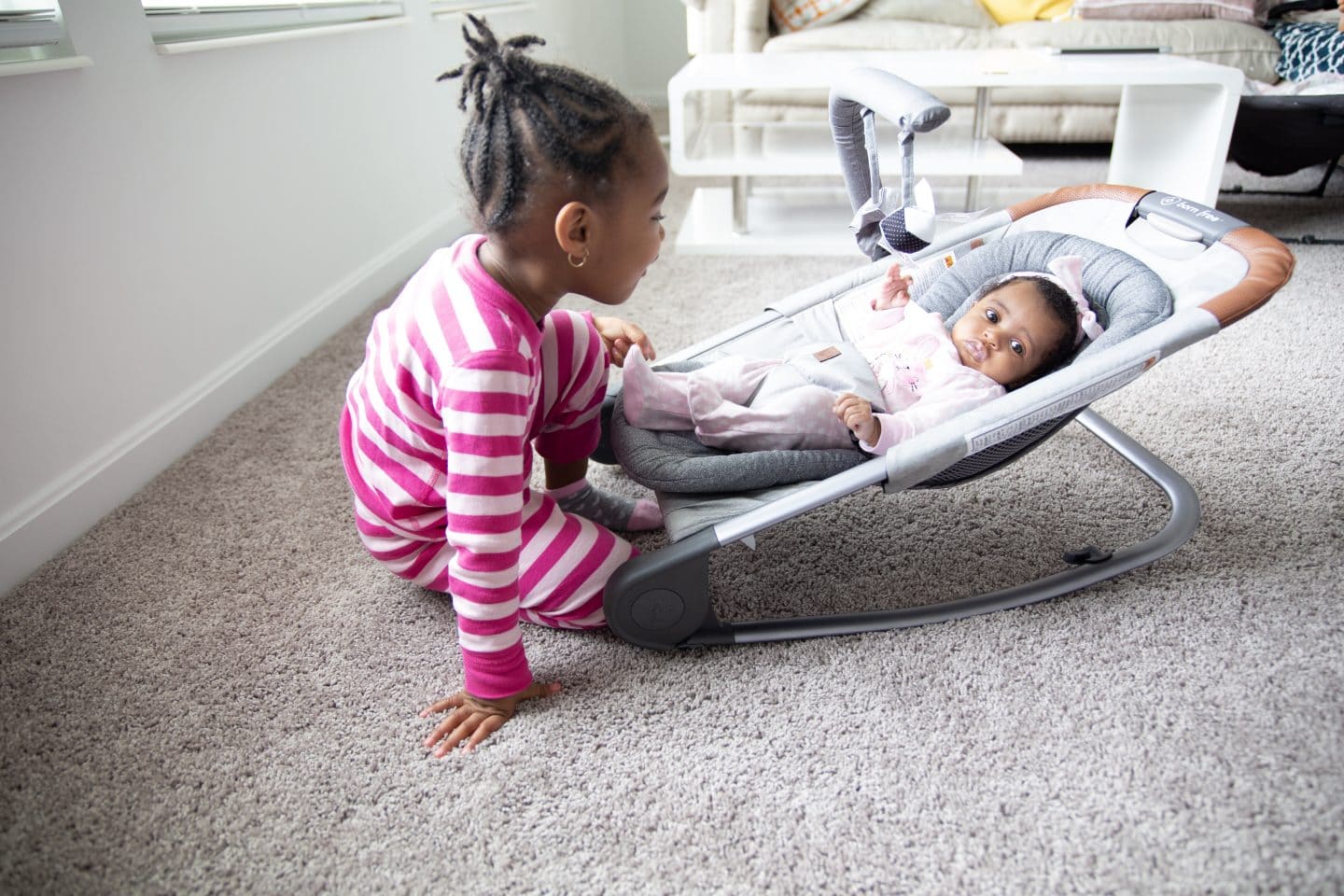 Our favorite born free™ item is the kova bouncer. I love the simplistic design and that it is soft and secure. It has a newborn fabric insert so Fatima has been able to use it since she got home. It also allows me to change the settings on the bouncer to allow Fatima to go from bouncing to rocking. I can fold it easily and tuck it into its carry-bag. Plus, I can take the toy bar down. So it’s super customizable depending on her needs at that time.